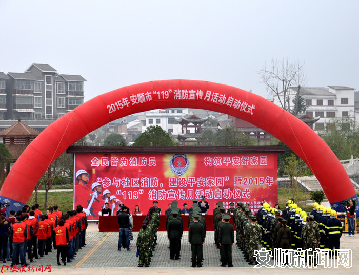 本网讯(记者 王玉环 文/图)11月9日上午,我市“119”消防宣传月启动仪式在西秀区旧州镇举行,市人防办、市委宣传部、团市委、市公安局、市旅游局、市消防支队领导及相关单位负责人、消防宣传志愿者、群众300余人参加启动仪式。