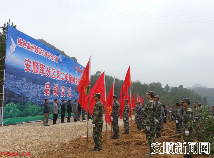 本网讯(记者 胡倩茜)11月13日,紫云自治县松山镇海子村,连升关山谷里军旗飘飘,三百余名民兵正声势浩大的挖坑刨土栽植树木,在神州大地的这片山坳里即将穿上绿色的新装,安顺军分区成建制组织民兵第二年植树造林任务部署会暨启动仪式正式举行。市委常委、安顺军分区司令员姚俊懿,市长助理王瑜参加并讲话。