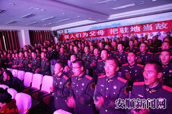 12月11日,安顺市道路运输局30余名文化志愿者演出团队走进武警安顺支队新训大队慰问演出,为新训官兵送来暖人心扉、催人奋进的文化大餐。王冠程 摄