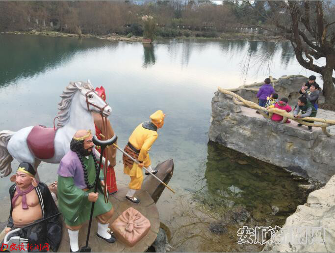 黄果树陡坡塘景点西游文化休闲步道位于黄果树景区的大瀑布景区内,临近陡坡塘瀑布。步道结合《西游记》里的部分小故事,利用现有的地形地貌,建景观小品,打造西游古道。古道充分利用了现状地形地貌,融入最契合主题的西游文化内容,打造最接地气的西游文化景点,使游客能够真切地感受到《西游记》的文化内涵。工程于2015年1月5日开工,目前已向游客开放。(记者 罗希 摄)