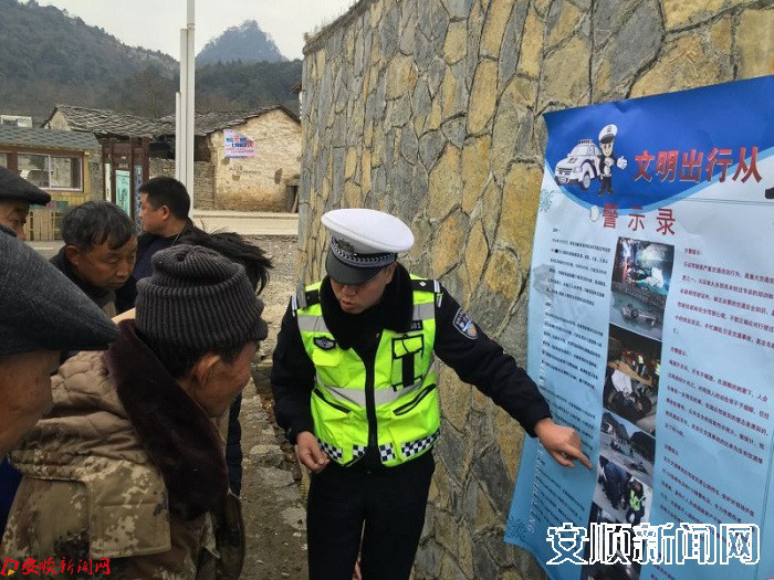 当日下午3点50分,七眼桥镇本寨村的宣传栏处,已经换上了有关“交通安全”的宣传海报,这是交警直属二大队七眼桥二中队为了此次“带法下乡”的普法宣传活动而专门制作的。二十余位当地居民正围着宣传栏观看,议论纷纷。“我的大儿子一直在外打工,这次春节就要回来了,我一定会叮嘱他,要多注意交通安全!”一位杨姓的老大爷告诉记者。