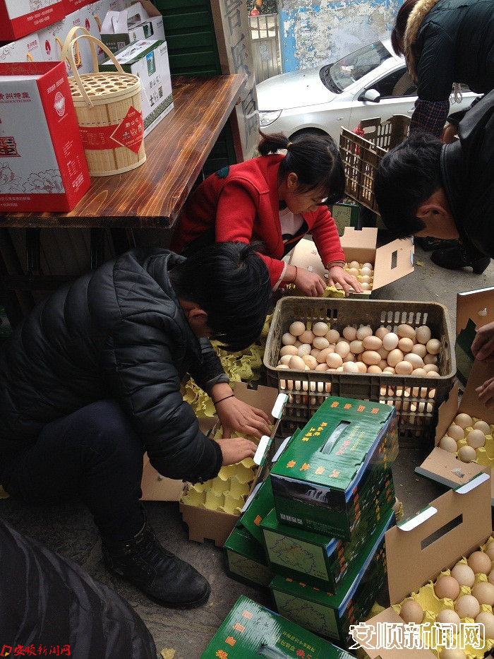 金杰是安顺鑫旺畜禽销售公司总经理,在西秀区政府和区扶贫办的大力支持下,探索出“公司+合作社(村集体)+贫困户”的模式。由贫困户养鸡,合作社(村集体)统一回收,再由公司统一出售。“农民只管养,我们提供鸡苗,销售渠道,现金结算,在西秀区畜牧局门面我们每天要收1万余枚鸡蛋。”
