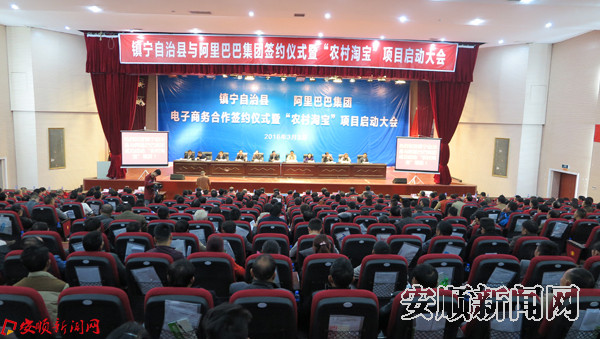 本网讯 今后镇宁的“土货”将通过“农村淘宝”“进城”了,3月3日上午,镇宁自治县与阿里巴巴合作的“农村淘宝”项目正式启动。在启动大会上镇宁县与阿里巴巴集团签订了农村电子商务合作意向协议。镇宁县成为安顺市首家与阿里巴巴集团“农村淘宝”项目合作的县。