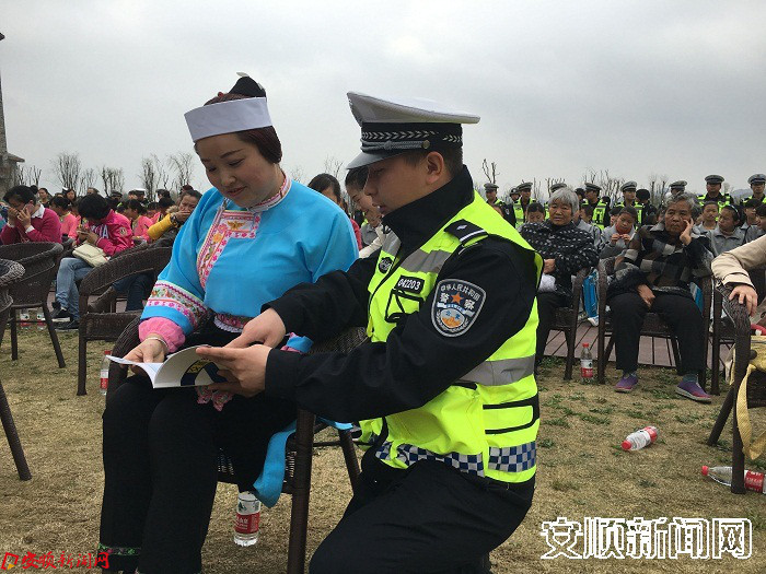 本网讯 3月4日,在第106个“三八”妇女节来临之际,安顺市公安局交警支队在七眼桥镇本寨村成功开展了“魅力女警,快乐巾帼——交通安全进千村”暨健身登山活动。在将交通安全知识带进千家万户的同时,也为全支队的女警们送去节日的祝福。
