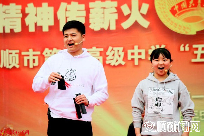 优秀学生代表代表受表彰学生进行了发言,表示将珍惜荣誉、继续努力、发奋学习,遵循安顺一中“做人做学问”的校训发扬“五四”精神,为一中和祖国的发展而努力!