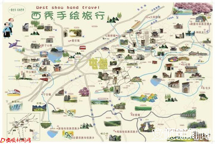 在《西秀手绘旅行》地图首发式上,免费派发了五千份手绘地图,市民通过现场扫描二维码即可免费领取。据介绍,该地图历时两月原创制作完成,目前仍在通过征集优质路线和攻略美图,不断更新和完善手绘地图。旅行地图首发两万份,在内地和香港同步发行,可通过书店、报刊亭、酒店、景区和网站购买。地图以手绘形式展现西秀旅游,内附十二张绘有屯堡女子形象的书签,每张书签上都有不同的安顺旅行地标。地图设计涵盖吃、住、行、游、娱、购等文旅信息,不仅直观的向游客展示了景点地标、交通住宿、旅游线路等信息,还详述了文化、民俗、美食、建筑、方言等旅游资讯,让游客“一图在手、畅游西秀”。