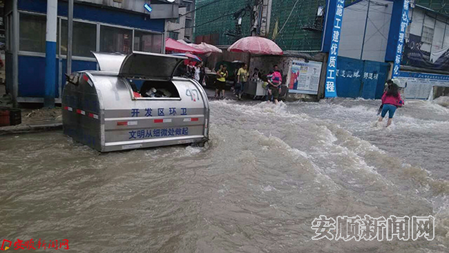 安顺市黄果树大街路段的麒麟小区路段、九中路段、两六路路段、北航路碧水园路段、西王山路段、西航路花牌坊路段、西秀区检察院路段等受暴雨的影响,积水较为严重。