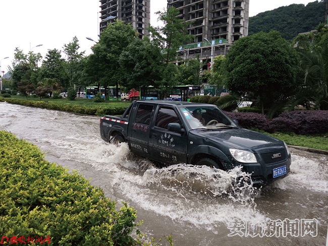 本网讯 6月19日傍晚,一场突如其来的大暴雨让安顺城区的许多路段都被雨水淹没,积水的路段甚至形成了一片片的“汪洋大海” 。