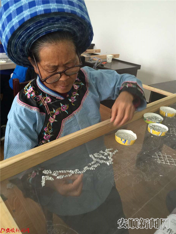正在认真学习“珠绣”的潘永爱,据介绍是参加此次培训最积极的一个学员,她不仅自己来学习,还叫上自己村里的姐妹们一起来。培训班上她们村的人就有20多个。这位来自关岭月亮湾村的布依妇女今年已有55岁,她告诉记者,自己从小就学会刺绣,平常绣的多是腰带、背带、绣花鞋等,她的一些绣品还拿到省里进行过参展比赛。潘永爱告诉记者一年平均下来,通过刺绣她能有近万元的收入。“平时要有人来定做才绣,就怕绣了没人要”潘永爱说目前最希望的是有个平台为她们布衣刺绣作推介,让她们的刺绣能走出关岭。