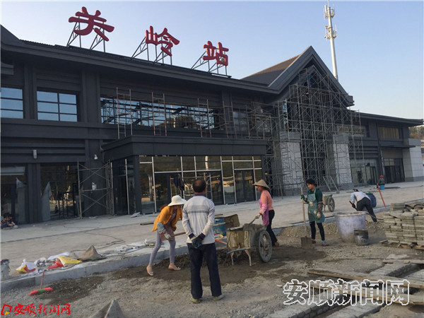 本网讯 11月21日,记者来到沪昆高铁关岭站看到,该站主体工程均已建设完毕,站前广场、停车场、道路都已建成;售票处售票设备已安装。现正在为站前广场、道路等节点进行亮化。为迎接高铁开通,关岭正在积极的做好开通准备工作。