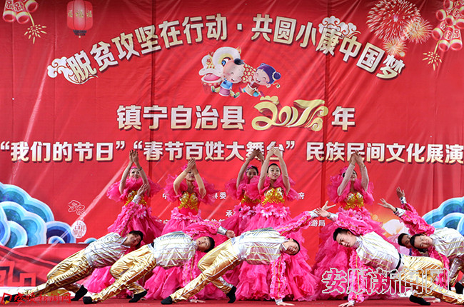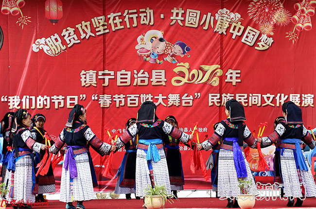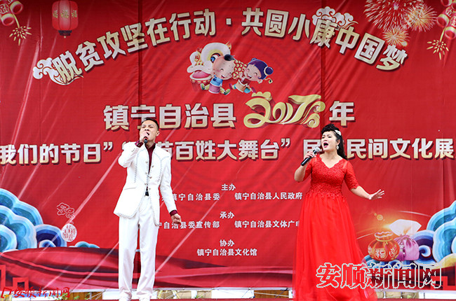 据悉,“我们的节日”“春节百姓大舞台”民族民间文化展演是镇宁自治县春节系列活动之一,以“脱贫攻坚在行动·共圆小康中国梦”为主题,在春节期间,将会持续在该县环翠街道、双龙山街道、丁旗街道、江龙镇、本寨镇等乡镇进行慰问演出。(镇宁自治县文体广电旅游局 胡天梅)