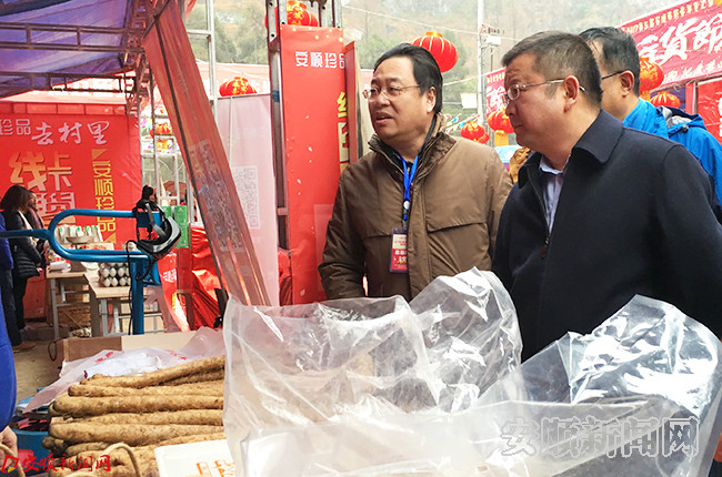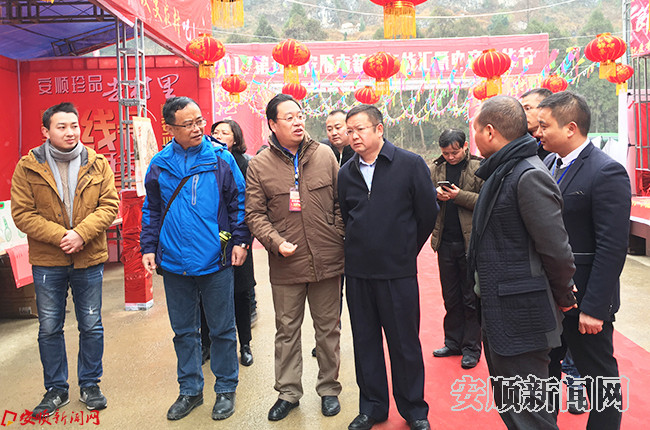 本网讯 1月14日,副市长张本强到“2017第五届安顺市新春年货汇暨电商年货节”会场进行参观指导。