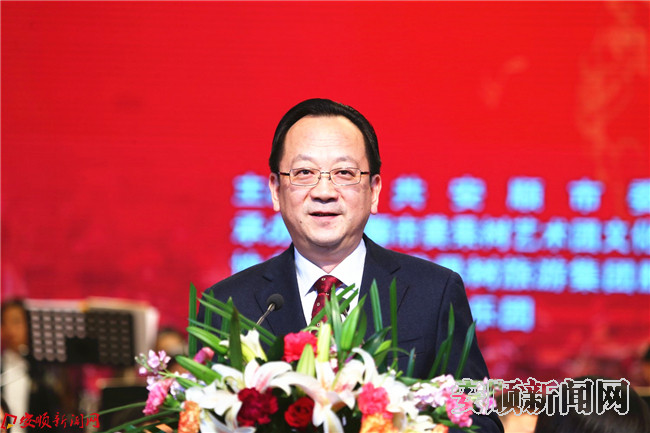 曾永涛在致辞中代表市委、市政府向全市人民,向各行各业的劳动者,向长期以来关心支持安顺经济社会发展的各界人士致以诚挚的问候,向参加演出的艺术家们表示衷心的感谢。他说,2016年,我市深入贯彻习近平总书记系列重要讲话精神和党中央治国理政新思想新理念新战略,以“一二四”攻坚战为主抓手,以全面深化改革为突破口,奋力提速发展,努力后发赶超,成为综合实力提升快、城乡面貌变化大、生态建设成效好、改革开放活力强、人民群众实惠多的一年,圆满完成市、县、乡、村四级班子换届,明确了今后五年全市工作的指导思想和奋斗目标。在决战决胜脱贫攻坚全面建成小康社会的伟大征途上迈出了坚实步伐,展现了全市人民开拓奋进的时代风采。