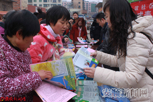 本网讯 1月22日,由安顺市西秀区西街办事处主办的以“春节期间关怀关爱流动人口”为主题的宣传活动在安顺市主城区西街大市场举行。