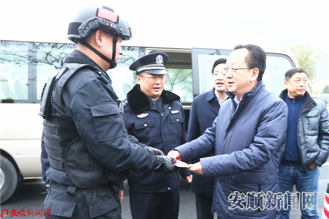 “你们舍小家、顾大家,用辛苦指数换来了群众的幸福指数、平安指数,我代表市委、市政府向大家表示亲切的慰问和新春的祝福。”曾永涛来到东二环路,看望慰问正在执勤的市公安局西秀分局特巡警大队民警,希望大家继续发扬优良作风,扎实苦干实干,为安顺和谐稳定作出积极贡献。