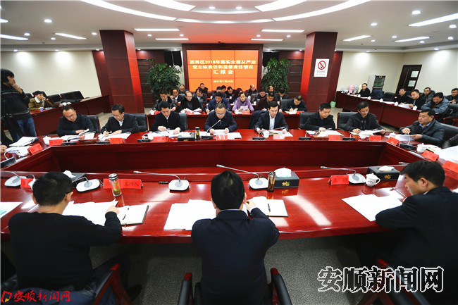 市委常委、西秀区委书记郭伟谊代表西秀区委向市委汇报2016年度贯彻落实全面从严治党主体责任情况。市委常委、市纪委书记滕义主持会议并反馈检查情况。区纪委汇报2016年度贯彻落实全面从严治党监督责任情况。