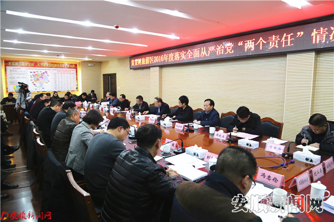 在听取黄果树旅游区党工委主体责任落实情况汇报和黄果树旅游区纪工委监督责任落实情况汇报后,陈训华对黄果树旅游区落实全面从严治党责任情况和景区建设情况给予肯定。他指出,黄果树旅游区是我市旅游龙头,对推进我市全域旅游发展至关重要,黄果树旅游区要充分发挥旅游资源优势,高标准编制旅游规划,高水平推进旅游开发,进一步加快景区建设,舞好旅游龙头,实现跨越发展。在抓好发展的同时,要同步抓好党建,要深入贯彻落实党的十八届六中全会、省委十一届八次全会和中纪委七次全会、省纪委六次全会及市第四次党代会精神,进一步增强推进全面从严治党的自觉性、主动性,责任感、使命感,继续把党风廉洁建设和反腐败斗争引向深入,切实把全面从严治党各项工作抓实、抓好、抓出成效。