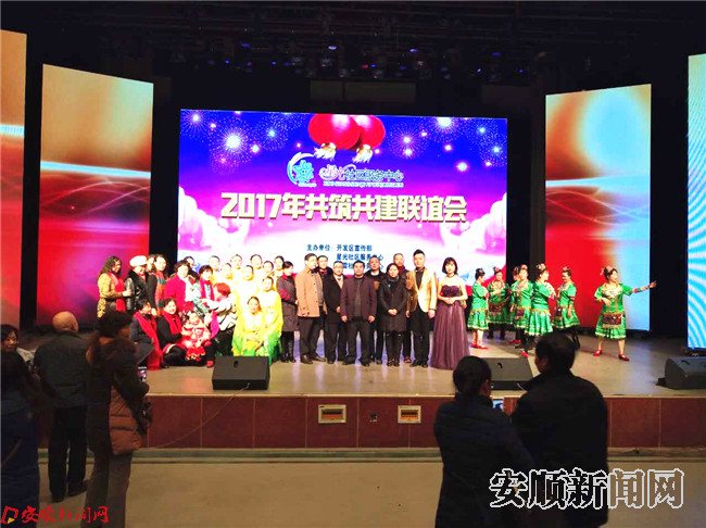 本网讯 为了给社区居民营造一个欢乐祥和的新年氛围,近日,开发区星光社区联合春雷社区为社区居民们举办了2017共筑共建联谊会,大家欢聚一堂,分享新年的祝福与喜悦。