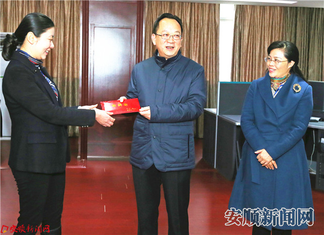 在安顺日报社,陈训华看望慰问坚守岗位一线的新闻工作者,详细了解报纸采编、出版、发行和新闻单位媒体融合发展等情况,并与一线采编人员亲切交谈,对大家过去一年的工作给予充分肯定。陈训华说,过去一年,安顺日报社广大干部职工用心、用情、用力工作,多角度、全方位地推出了一批高质量、接地气的优秀作品,传递了安顺好声音,展示了安顺新形象。在下一步工作中,要紧紧围绕全市工作大局,不断创新方法手段,加快推动媒体融合发展,进一步提高新闻舆论工作的质量和水平,推出更多鲜活生动、贴近人民群众和大家喜闻乐见的新闻报道,为建设“富美安顺”汇聚强大正能量。