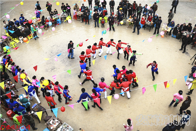 本网讯 2月3日,西秀区横水村的布依族同胞喜过新春“同心”节。当地布依族人家各自作好一桌饭菜,集中在村里的广场上,同吃“同心”宴,用这种方式同心祈福来年生活幸福美满。