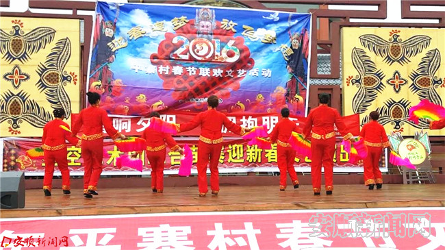 本网讯 2月1日,开发区宋旗镇平寨村举行2017年春节文艺联欢汇演,各族儿女欢聚一堂,用自己的欢歌乐舞迎接新年的到来,活动吸引来自两城区以及关岭县等地的数十支舞蹈队参与演出。