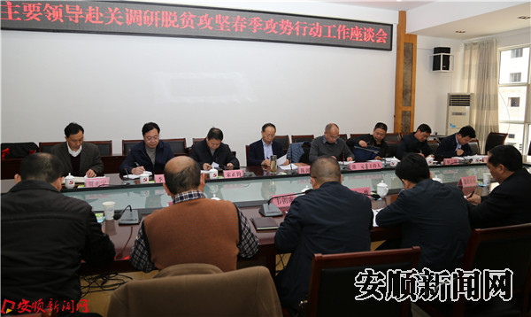 随后,陈训华主持召开座谈会,研究部署脱贫攻坚春季攻势行动相关工作。陈训华指出,全市上下要进一步学习深、领会透、落实好中央、省委和市委关于脱贫攻坚的各项要求和重点任务,主攻易地搬迁扶贫和产业扶贫两场硬仗,全力抓好各项工作落实,进一步掀起脱贫攻坚春季攻势行动热潮;要深化细化全市脱贫攻坚春季攻势行动计划,制定作战方案、组建工作专班,确保取得实实在在的成效。