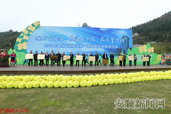 本网讯 3月14日,由省农委、省旅发委和市政府共同主办的2017年贵州省油菜花农旅一体发展现场推进活动在西秀区七眼桥镇云山屯举行。省人大常委会副主任傅传耀,省政协副主席黄家培,市委书记曾永涛,市人大常委会主任张平,市政协主席杨华昌出席活动。省农委主任袁家榆讲话。市委副书记、市委政法委书记朱桂云致辞。省农委总农艺师黄俊明,省旅发委副主任牟勇,市领导尹恒斌、熊元出席活动。