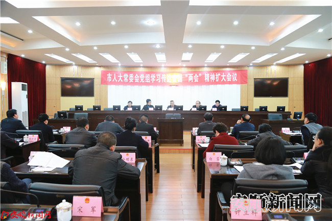 本网讯 3月21日,市人大常委会召开党组扩大会议,传达学习十二届全国人大五次会议、全国政协十二届五次会议精神、习近平总书记参加各团组审议讨论时的重要讲话精神和李克强总理所作的国务院政府工作报告、张德江委员长所作的全国人大常委会工作报告、俞正声主席所作的全国政协工作报告的主要精神,并就结合实际贯彻落实全国“两会”精神做出安排。