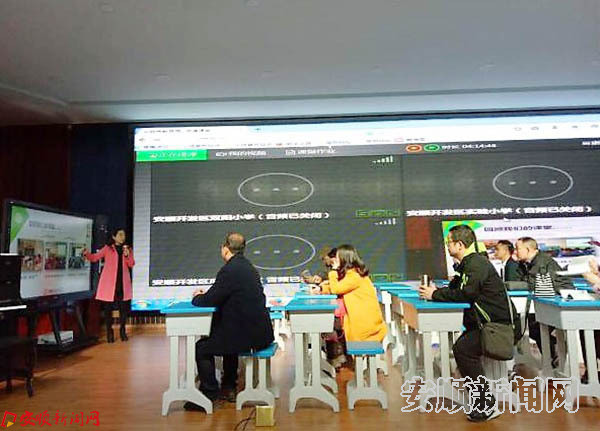 调研组一行来到安顺城市服务学校,观摩小学音乐课的互动课堂展示课,听取我市“优质资源班班通”以及教育云平台的建设情况和应用情况汇报,并对教育云智慧教学、四所学校实时互动课堂模式表示肯定。