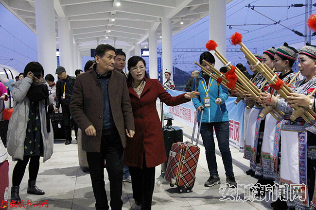 本网讯 3月31日下午,上海知青及媒体考察团乘坐“黄果树号”高铁专列(G1377)抵达安顺。市委常委、市委宣传部部长杨晓曼,副市长廖晓龙率有关部门负责人在安顺高铁西站迎接考察团一行。