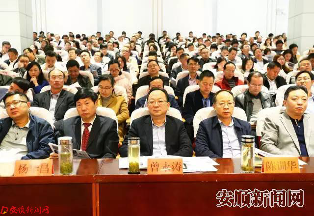 市委书记曾永涛主持报告会。市委副书记、市长陈训华,市政协主席杨华昌,市委常委杨晓曼、高青、滕义、徐德祥、胡金武、董艳玲,市人大常委会、市政府、市政协领导班子成员和党组成员,安顺军分区政委,市中级人民法院院长,市人民检察院检察长,安顺学院党委书记,安顺职院党委书记、院长出席报告会。