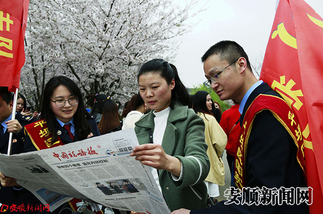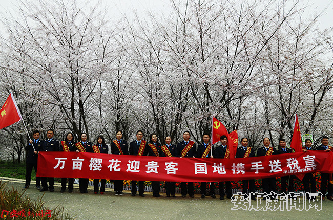 本网讯 四月恰逢平坝农场万亩樱花盛放,往来游客络绎不绝,涵盖各行各业。近日,平坝区国地税瞄准时机,在樱花园开展以“深化税收改革•助力企业发展”为主题的税收宣传月启动仪式。