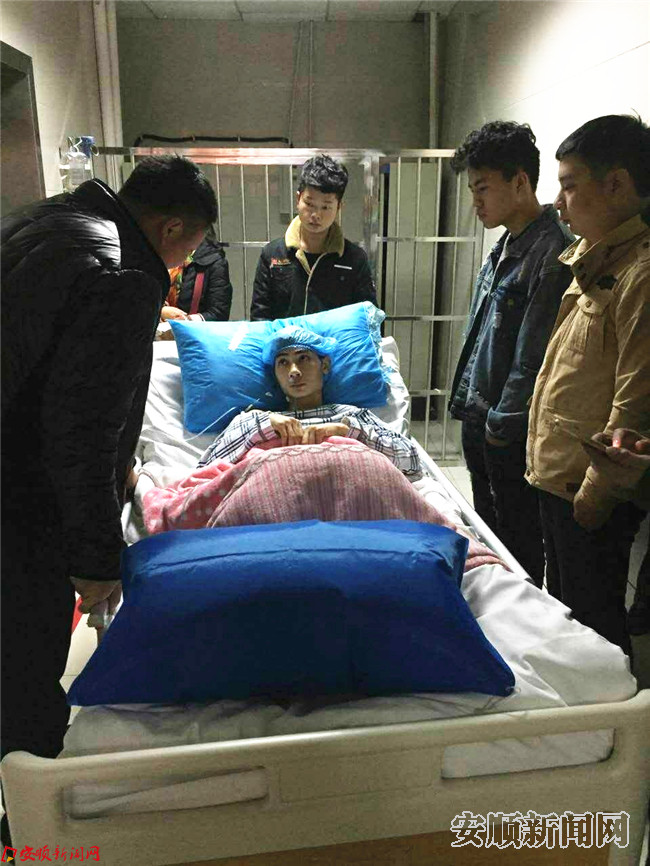 今年刚满20岁的柏光鑫,是安顺市平坝区公安局便衣大队一名辅警,3月9日下午4点多,在与4位队友共同执行街面盘查任务时,遭到嫌疑人反抗并被刺成重伤。