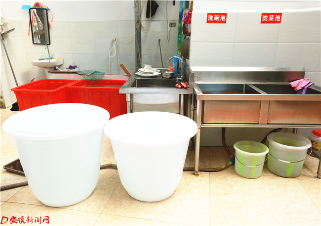 而在安顺中华东路的一间粉面馆,老板告诉记者,自己的店里早在周五那天便储好水了,就连纯净水也多买了好几桶;虽然店里每天的用水量要比一般家庭多得多,但就店里的储水情况来看,坚持还是有些问题的,但是今天没有停水,那更不担心水不够的问题了。