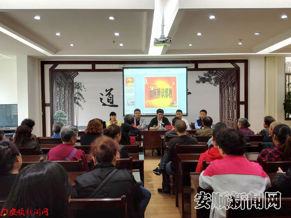 本网讯 5月9日,西秀区东街社区联合省科学技术协会、省反邪教协会在东街社区会议室开展了2017年度反邪教科普讲座。省反邪教协会成中平老师为辖区居民进行反邪教知识宣讲。