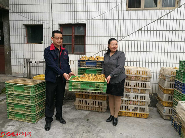 5月5日,该公司为轿子山镇165户建档立卡户捐赠3300只鸭苗。每户贫困户领到了20只鸭子,采取 “公司+合作社+农户”的模式进行养殖,让农户抱团发展,让养殖生产专业化、规模化。村合作社为农户提供专业化的养殖方案和有效的风险防御手段,为农户养殖成功提供了保障。