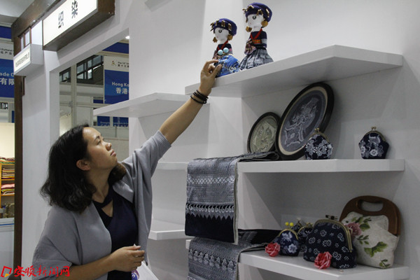 我市参展企业为:西秀区杨婷婷蜡染艺术发展有限公司、大明屯堡正坤雕刻有限公司、紫云自治县格凸河红生态食品开发有限公司、普定县朵贝重华茶业有限责任公司、普定县马官文化艺术发展有限责任公司、安顺市西秀区刘官乡新新创意木雕坊。