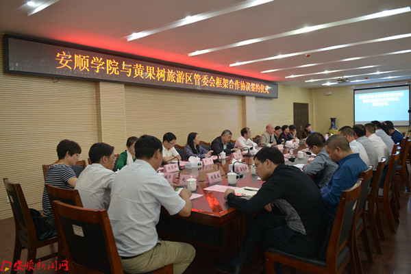 据了解,安顺学院作为我市重要的高等院校,学科门类齐全,专业覆盖面广,在人才、技术、教育培训等方面优势明显。其旅游管理、农业技术、对外交流等领域与黄果树旅游区相关产业发展关系密切。经过多年的探索和实践,黄果树旅游区通过与安顺学院进行"校地合作",安顺学院陆续为黄果树旅游区输送了大批高素质人才和优秀实习生,为推动黄果树旅游区旅游业、农业产业发展和开展对外交流作出了积极贡献。