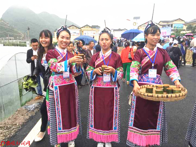 本网讯 美酒喝起来,歌儿唱起来!锣鼓敲起来,喇叭吹起来!6月29日,关岭布依村寨落叶新村是格外的热闹,身着独特民族服装的布依同胞们载歌载舞,共同欢度“六月六”布依族风情节。