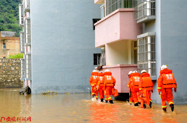 7月1日上午,该县城区五峰街道办红岩小区多家住户被积水围困,安全出口被洪水堵住,导致楼上群众出行困难,该县消防大队接到群众报警后,立即赶赴现场开展营救。经过挨家挨户核查,发现被困群众4名,其中一名为儿童。