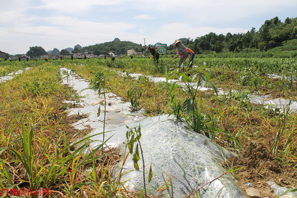 “虽然受灾,但是农民工的工资要按时发,这次共发了30多万元工钱。”村支书吴华荣坚定的说,近期遭受暴雨,种植基地损失严重。