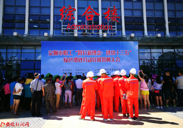 本网讯 7月26日,正值大暑,由安顺市总工会、安顺市发改委共同组办的职工“践行新理念·建功十三五”绿色增效劳动竞赛誓师大会在安顺市人民医院新院举行,来自全市各县区工会和发改系统的干部职工和相关企业职工参加了誓师大会。