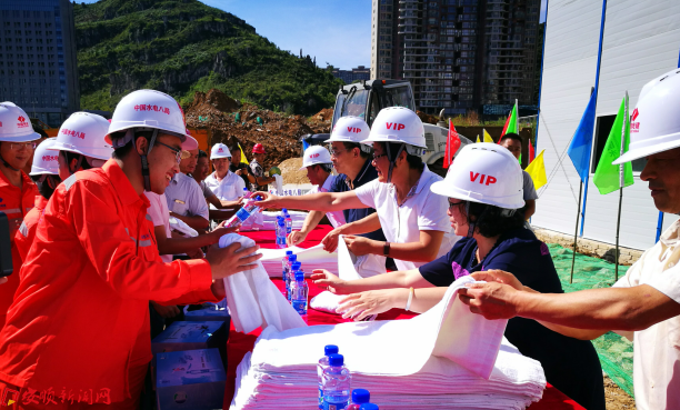 本网讯 7月26日,大暑时节,在市人民医院新院工地上的水电八局职工正头顶烈日,井井有条地进行着施工作业。市人大常委会副主任、市总工会主席罗晓红带领着市总工会的干部职工,给水电八局职工送去了纯净水、西瓜、毛巾等物资。