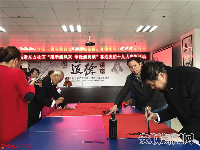 活动邀请了多名书法爱好者参加,他们现场挥毫泼墨,以独特的笔触书写了“中国梦”、“不忘初心继续前进”等作品,营造了东方社区弘扬主旋律、凝聚正能量的良好氛围。