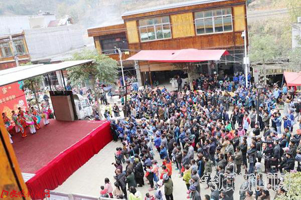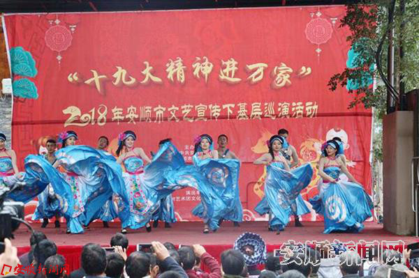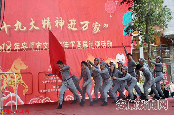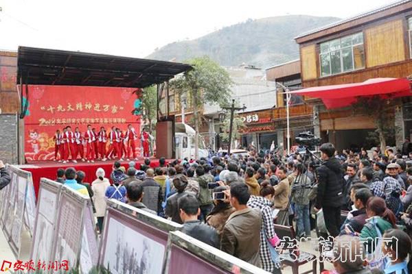 本网讯 1月12日,“十九大精神进万家”2018年安顺市文艺宣传下基层巡演活动走进镇宁自治县简嘎乡,该乡300余名干部群众共同观看表演。
