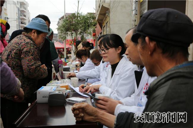 本网讯 1月21日,镇宁自治县2018年文化、医疗卫生、科技“三下乡”活动走进江龙镇,现场开展了家家户户送春联、免费义诊及党的政策、法制、疾病预防、计划生育、科技文化等一系列教育宣传活动。