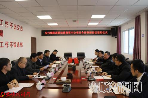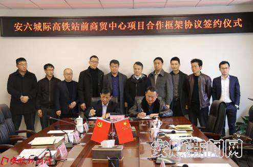 会上,双方签署了《安六城际高铁站前商贸中心项目合作框架协议》,并分别对安六城际高铁站前商贸中心项目的现状及今后的开发建设进行了交流。