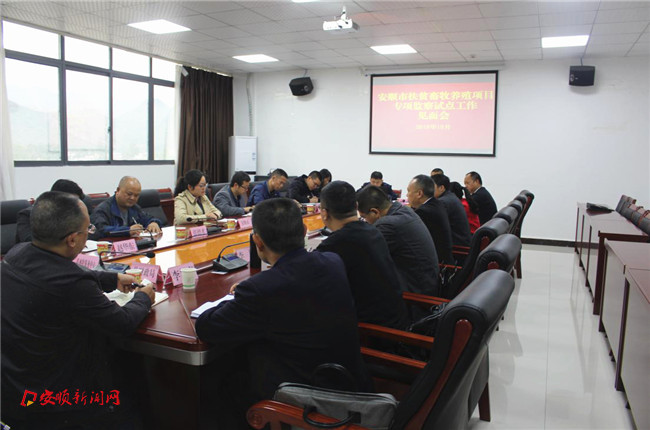 10月10日,安顺市扶贫畜牧养殖项目专项监察试点工作专项监察组赴关岭召开见面会,全面启动关岭自治县扶贫畜牧养殖项目专项监察试点工作。