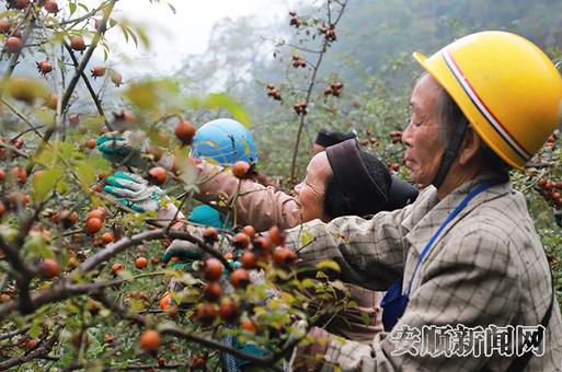 深秋雾霭沉沉,深山里飘荡出村民们质朴的歌声和阵阵笑声。近日,记者走进镇宁自治县双龙山街道打硐村石头冲组,经过一条蜿蜒陡峭的山路看见,农户三五成群围着金灿灿的刺梨,一边采摘一边欢快地唱着山歌。清风掠过,在农户们阵阵欢笑声中起舞,带来一阵独特的金刺梨清香和丰收的喜悦。