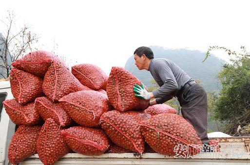 不一会儿,一辆白色货车从蜿蜒的山路徐徐驶近,待车停稳后几个工人把一袋袋的金刺梨抬上货车。王伦兴介绍:“销售这一块,我们与关岭刺梨云上花公司签订了协议,只要金刺梨产得出来,有多少他们都能够收购,销路不用愁。按每一斤3元钱的收购价计算,预计毛收入可达12万元左右。”